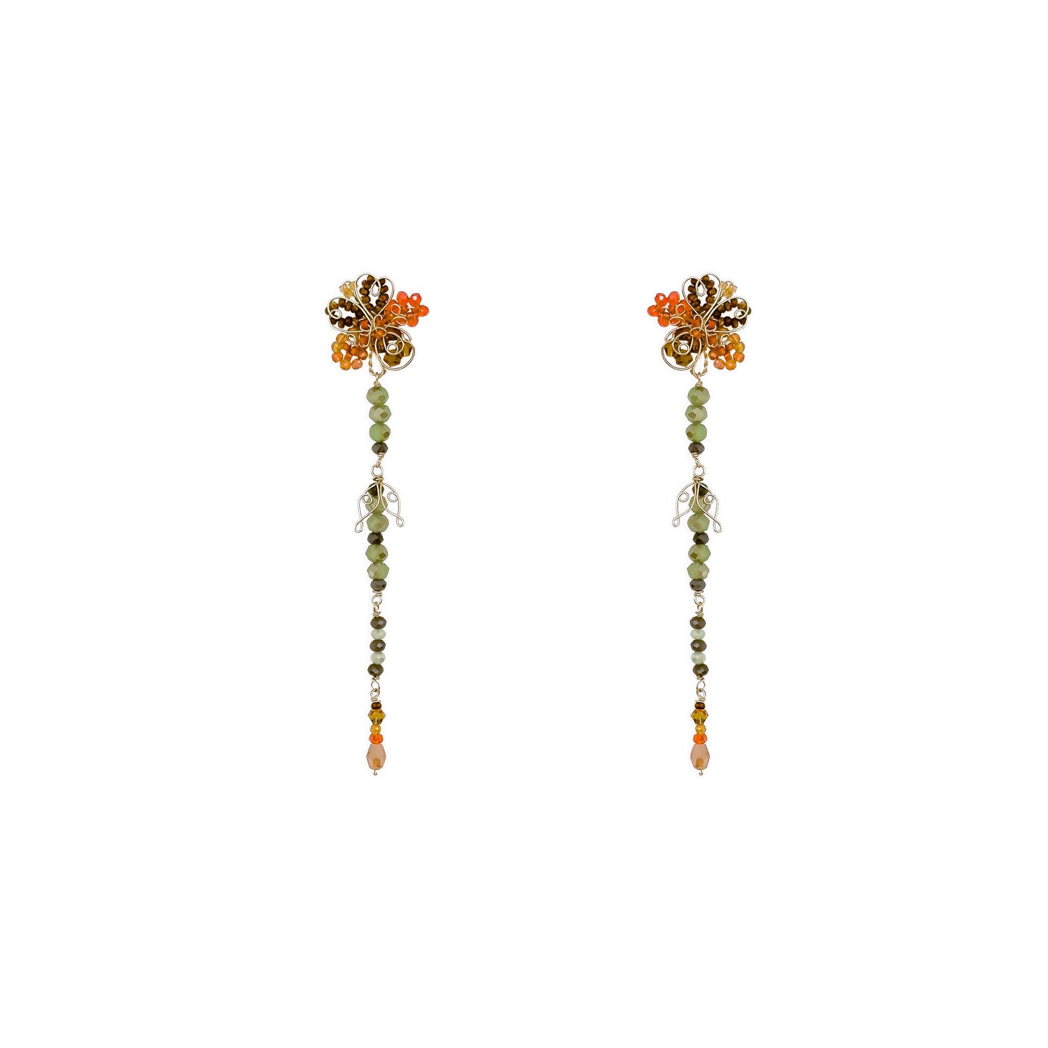 Composición: Alambre 99% cobre bañado en plata con tratamiento de esmalte, muranos, mostacillas checas, strass y postes hipoalergénicos.