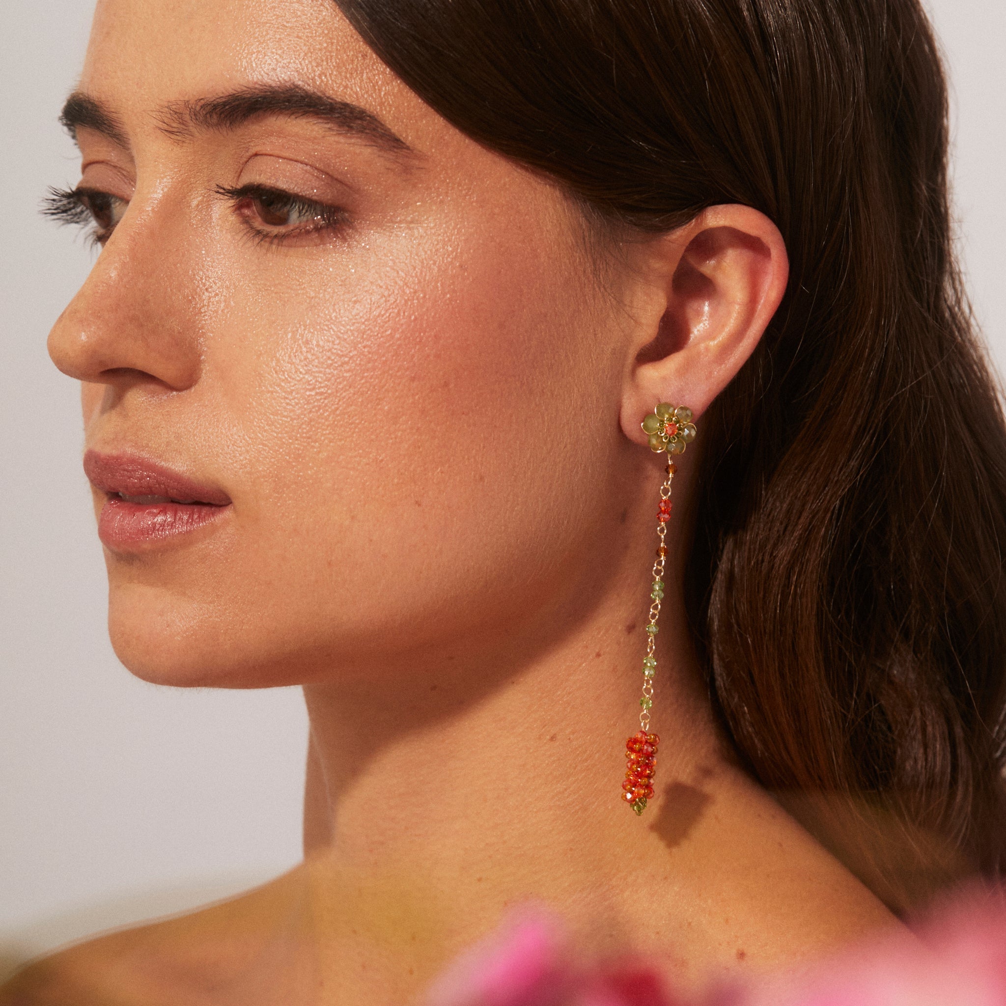 Composición: Alambre 99% cobre bañado en plata con tratamiento de esmalte, muranos, mostacillas checas, strass y postes hipoalergénicos.