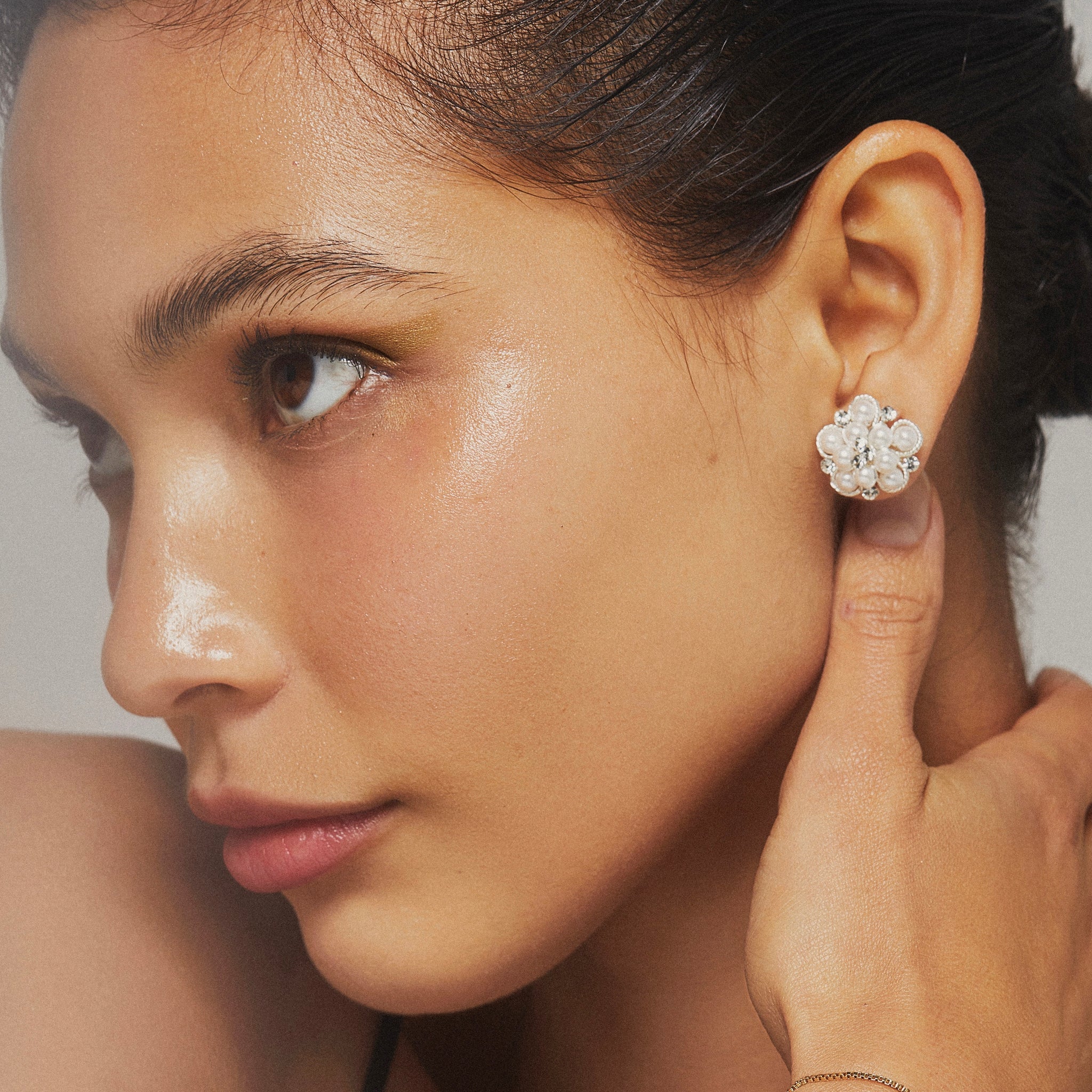 Aretes studs hechos a mano con alambre 99% cobre bañado en plata. Decorados con muranos y circones, brindando un toque de brillo sutil y elegante. Ligeros y con postes hipoalergénicos, ideales para un estilo sofisticado y cómodo.