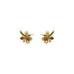 Aretes studs hechos a mano con alambre 99% cobre bañado en plata. Decorados con muranos y circones que aportan un brillo sutil y elegante. Ligeros y con postes hipoalergénicos, ideales para un look sofisticado y versátil.