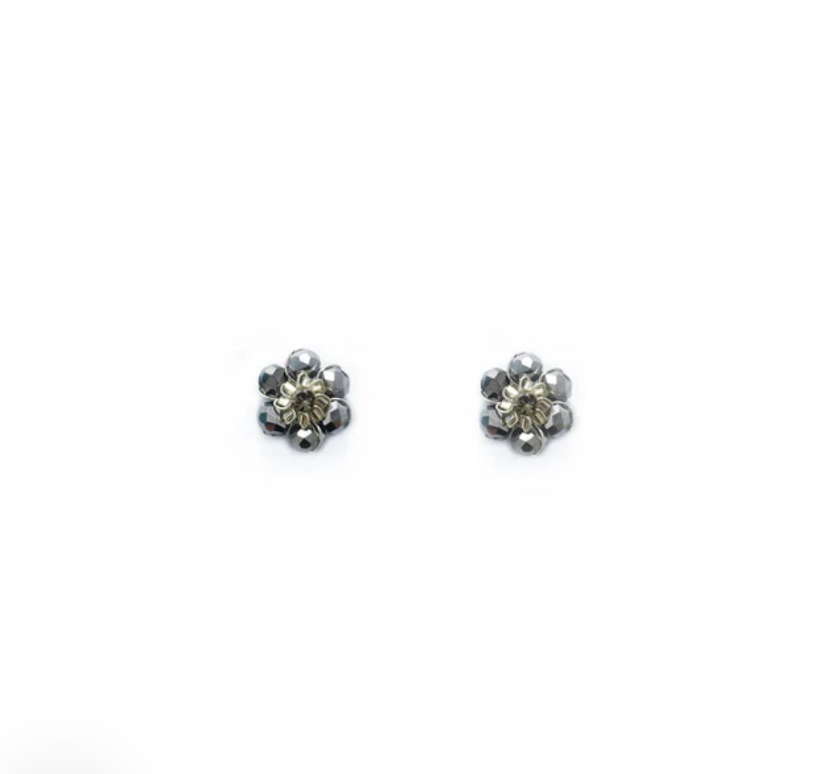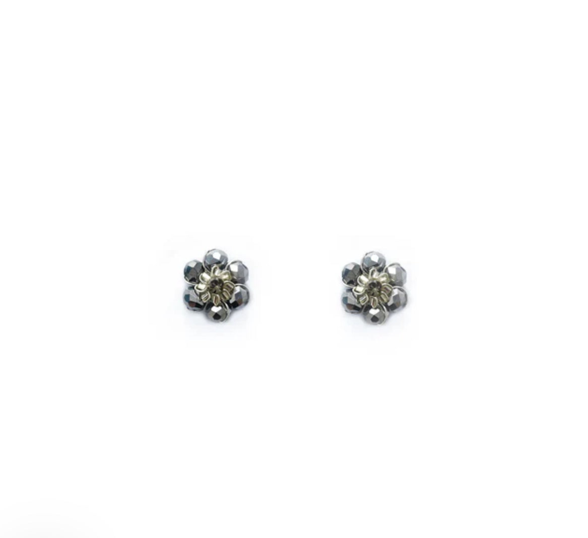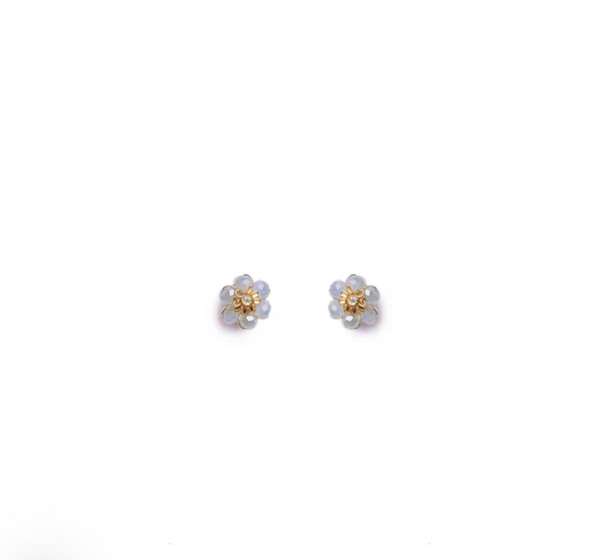 Aretes studs hechos a mano con alambre 99% cobre bañado en plata. Decorados con muranos y circones que añaden un brillo sutil y elegante. Ligeros y con postes hipoalergénicos, ideales para un look sofisticado y versátil.