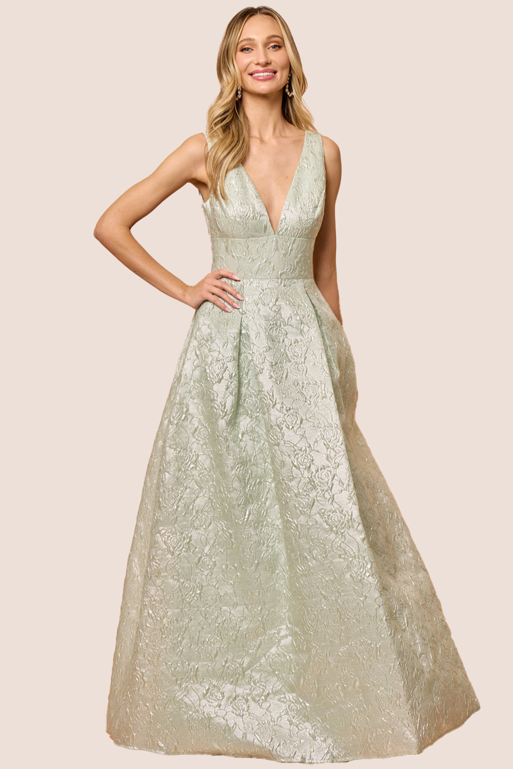 Vestido de maxi presenta un escote en V con tirantes anchos para un ajuste cómodo. La cintura está ceñida, realzando la figura de manera favorecedora.