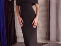 Vestido largo, off-shoulders, sirena, corte corazón, corsé ajsutable en la espalda, abertura en la pierna.