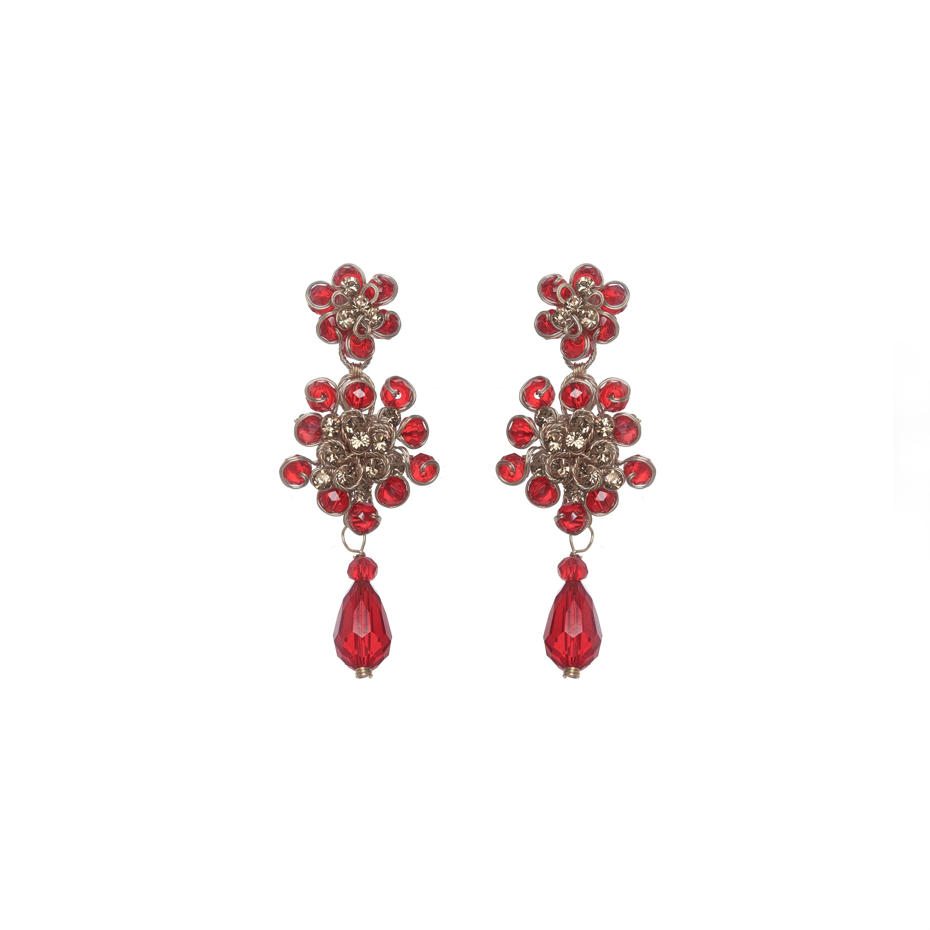 Composición: Alambre 99% cobre bañado en plata con tratamiento de esmalte, muranos, mostacillas checas, strass y postes hipoalergénicos.