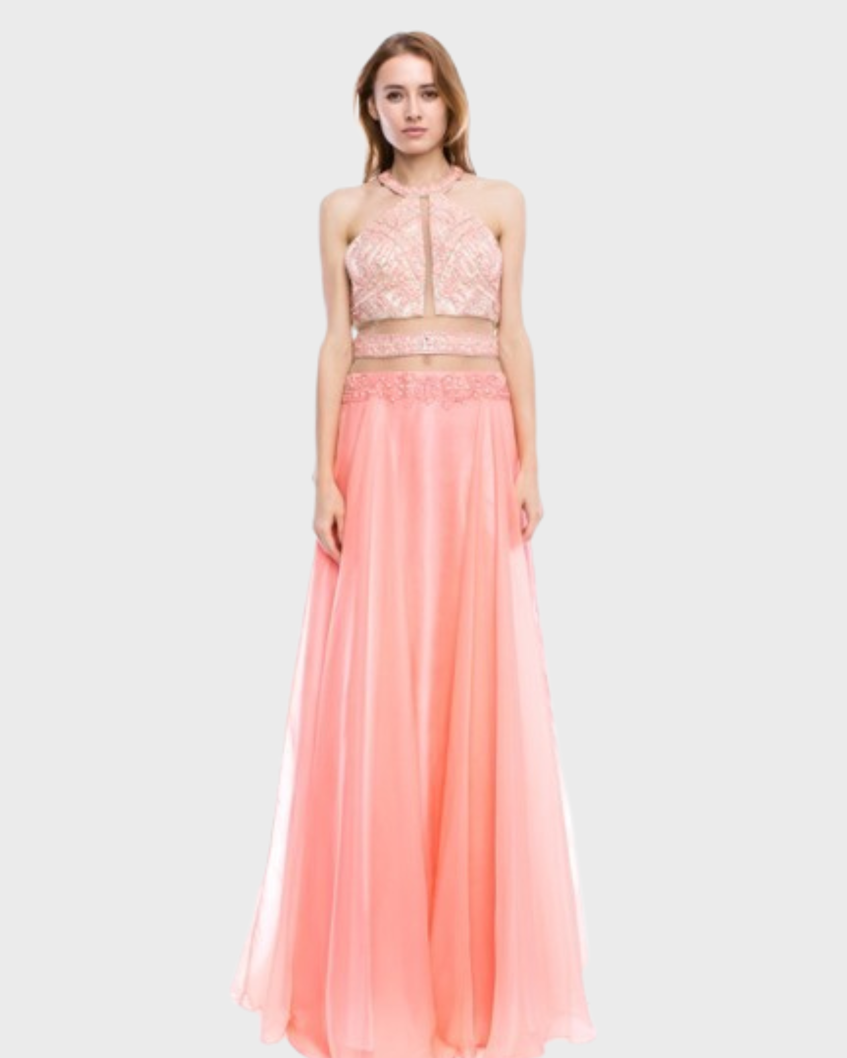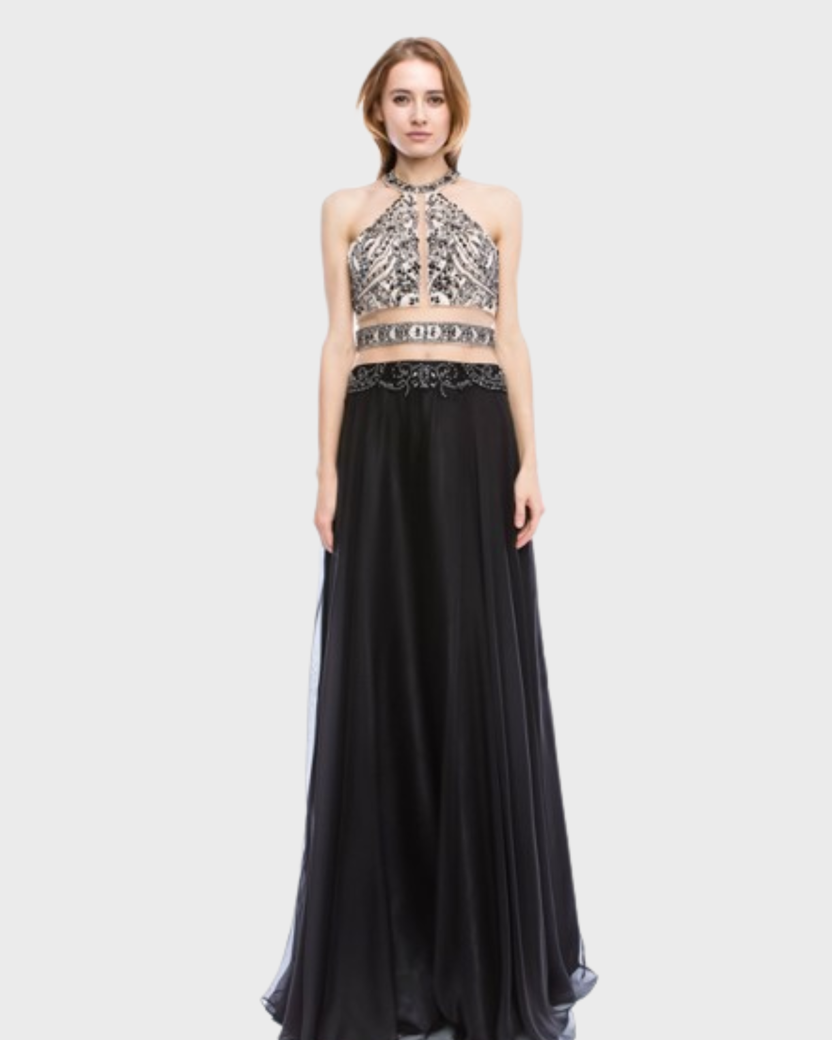 Cuello alto, transparencia cintura, pedreria, gasa, suelto