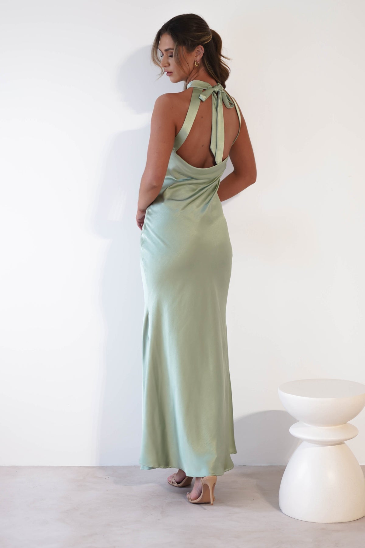 Vestido largo de satén plisado. Presenta un escote en V profundo y mangas cortas y amplias. La falda fluye hasta el suelo con un corte recto y pliegues que añaden elegancia y movimiento al diseño. Incluye un cierre con cremallera en la parte posterior para un ajuste seguro.