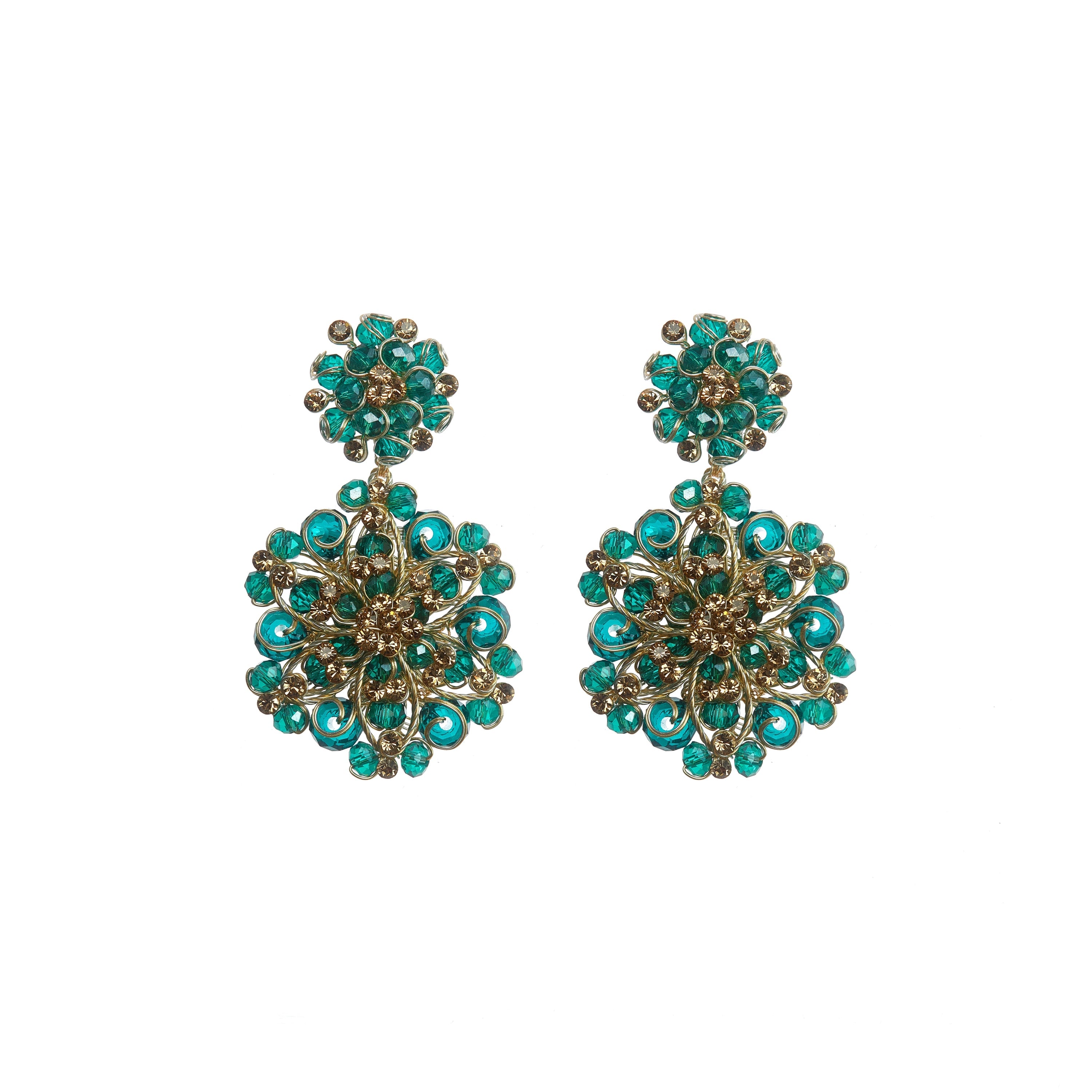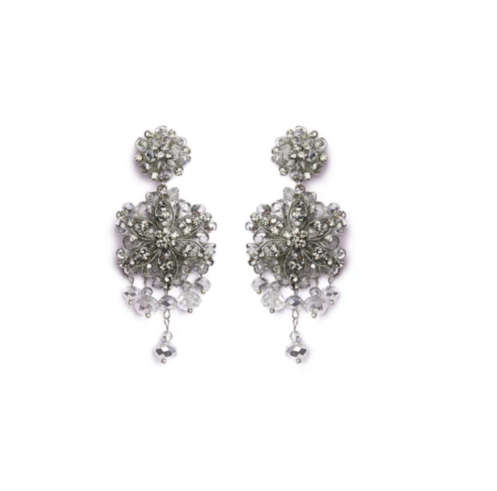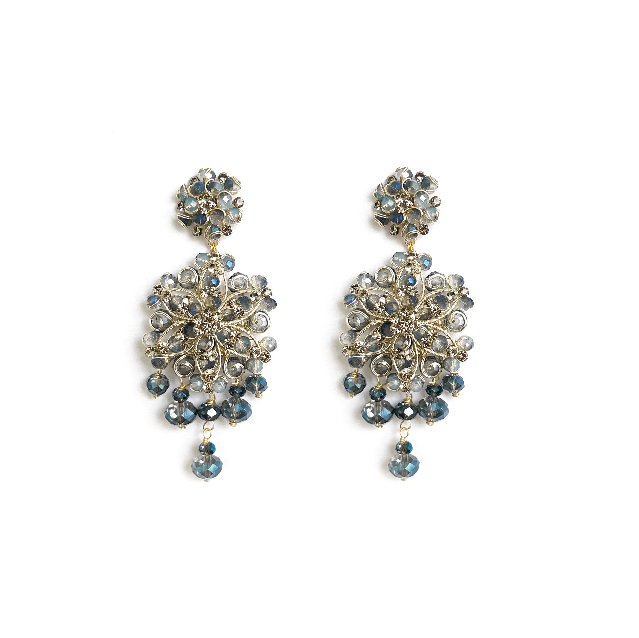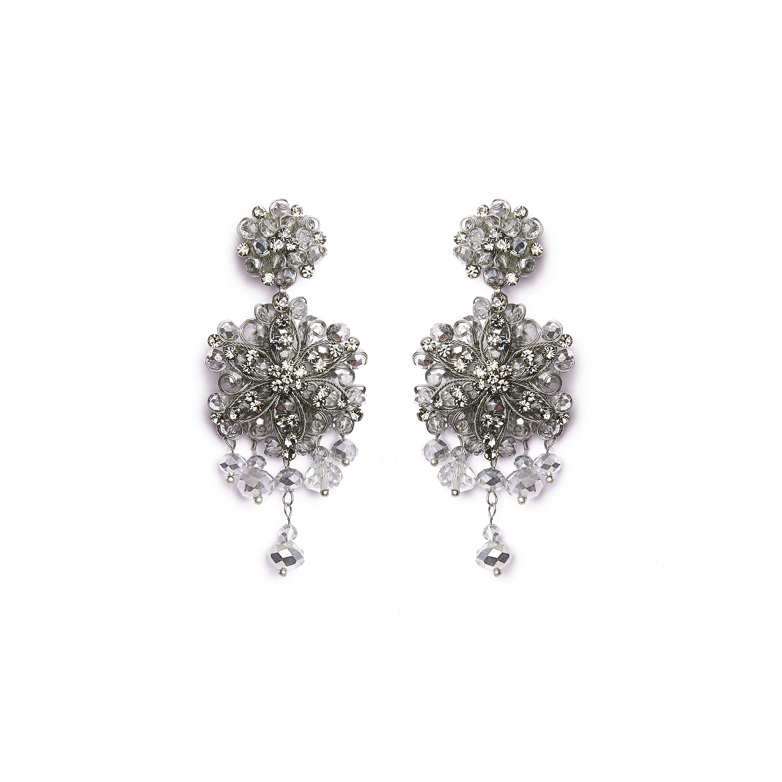 Composición: Alambre 99% cobre bañado en plata con tratamiento de esmalte, muranos, mostacillas checas, strass y postes hipoalergénicos.