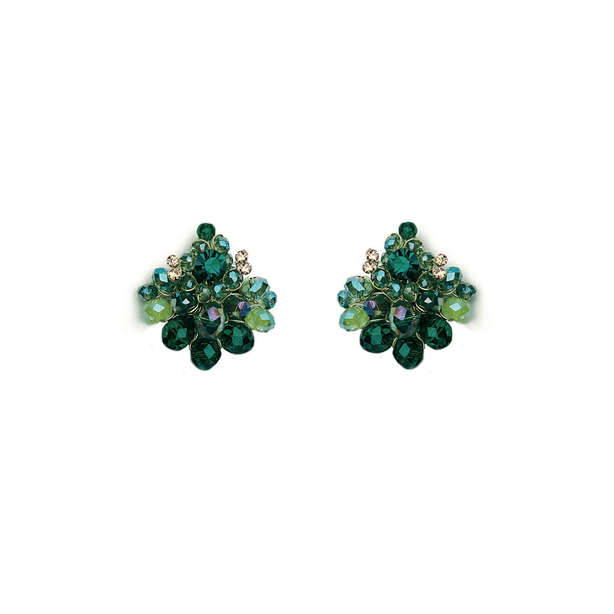 Aretes studs hechos a mano con alambre 99% cobre bañado en plata. Decorados con jade y circones que aportan un toque de color y brillo sutil. Ligeros y con postes hipoalergénicos, perfectos para un look elegante y moderno.