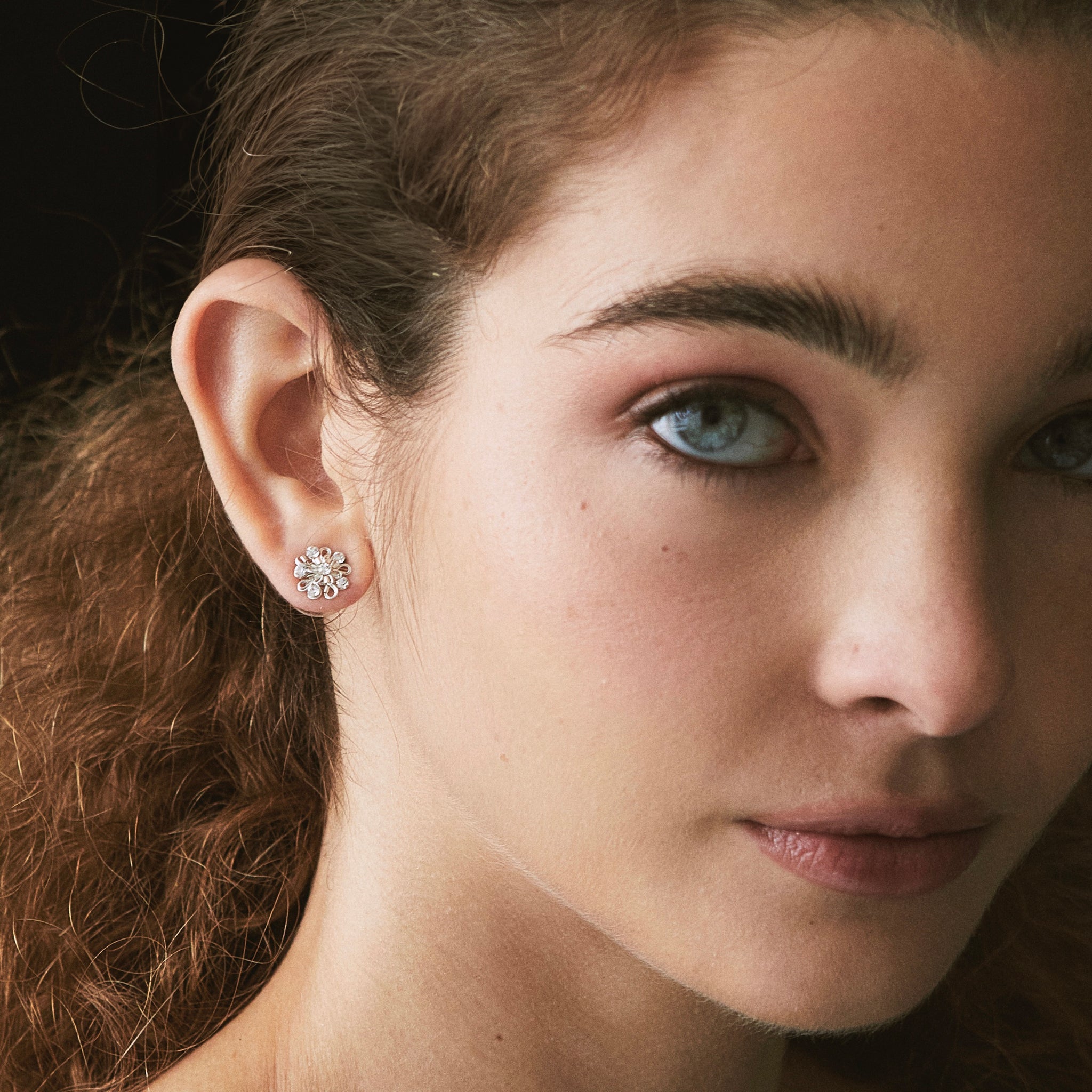 Studs hechos a mano con alambre 99% cobre bañado en plata. Decorados con muranos y circones que aportan un brillo elegante y sofisticado. Ligeros y con postes hipoalergénicos, ideales para un toque refinado en cualquier ocasión.
