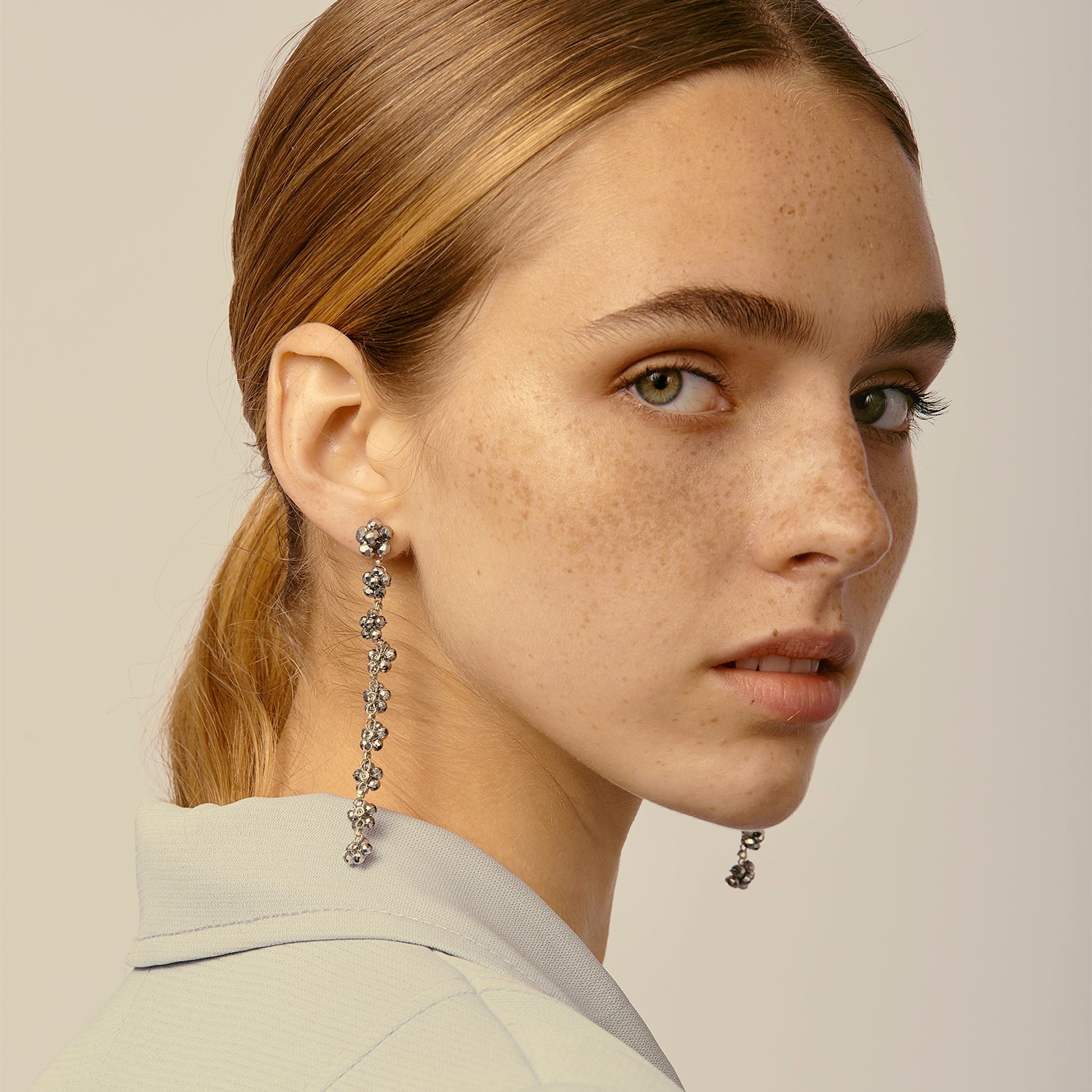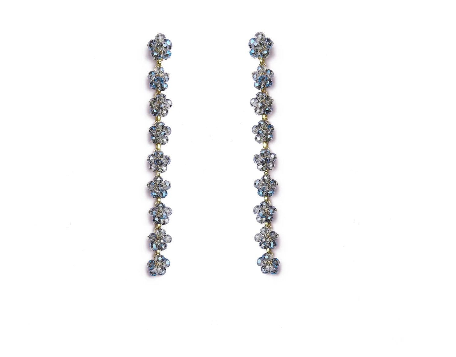Composición: Alambre 99% cobre bañado en plata con tratamiento de esmalte, muranos, mostacillas checas, strass y postes hipoalergénicos.